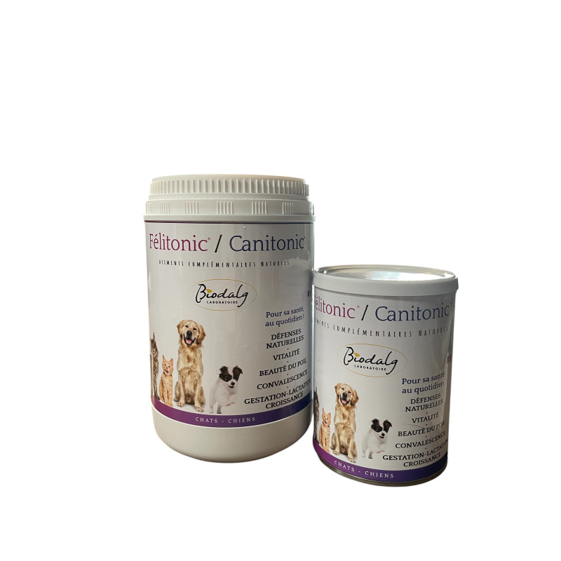 Félitonic®/Canitonic® apporte tonus et vitalité au quotidien, stimule les défenses naturelles, renforce l'équilibre naturel de la peau et rend le poil plus dense, plus soyeux. Il est également le complément alimentaire idéal de la gestation et de la lactation.